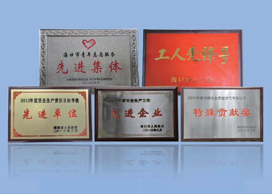 榮獲海口市燃?xì)鈪f(xié)會(huì)頒發(fā)的2012年度特殊貢獻(xiàn)獎(jiǎng)。